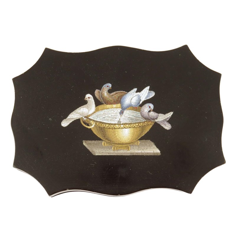 A late 19th century Italian micromosaic paperweight, of serpentine outline decorated with the 'Doves of Pliny', 9 x 12.5cm.