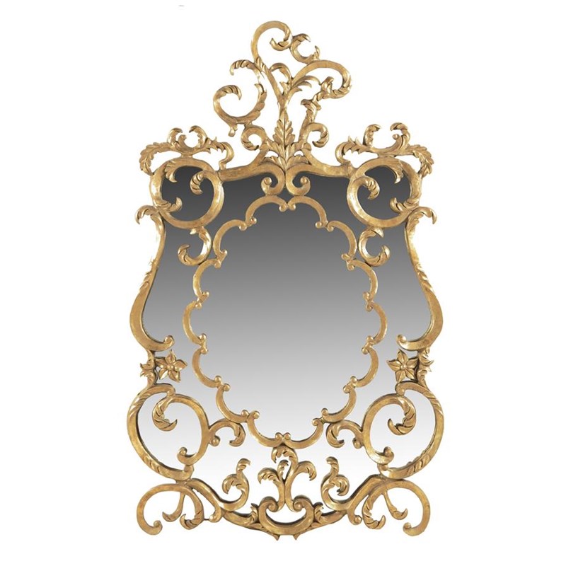 An 18th century style gilt composition and metal framed wall mirror, decorated with scrolls and flowers, mid 20th century, 155.1 x 93.2cm.