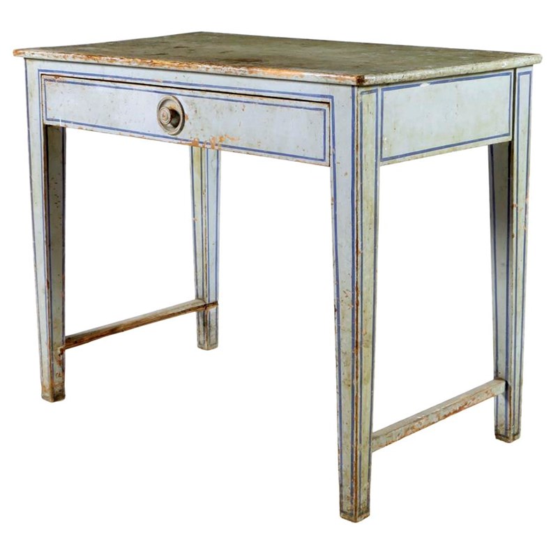 A 19th century painted pine side table, with a frieze drawer, 78.3cm high, 95cm wide, 55.4cm deep.