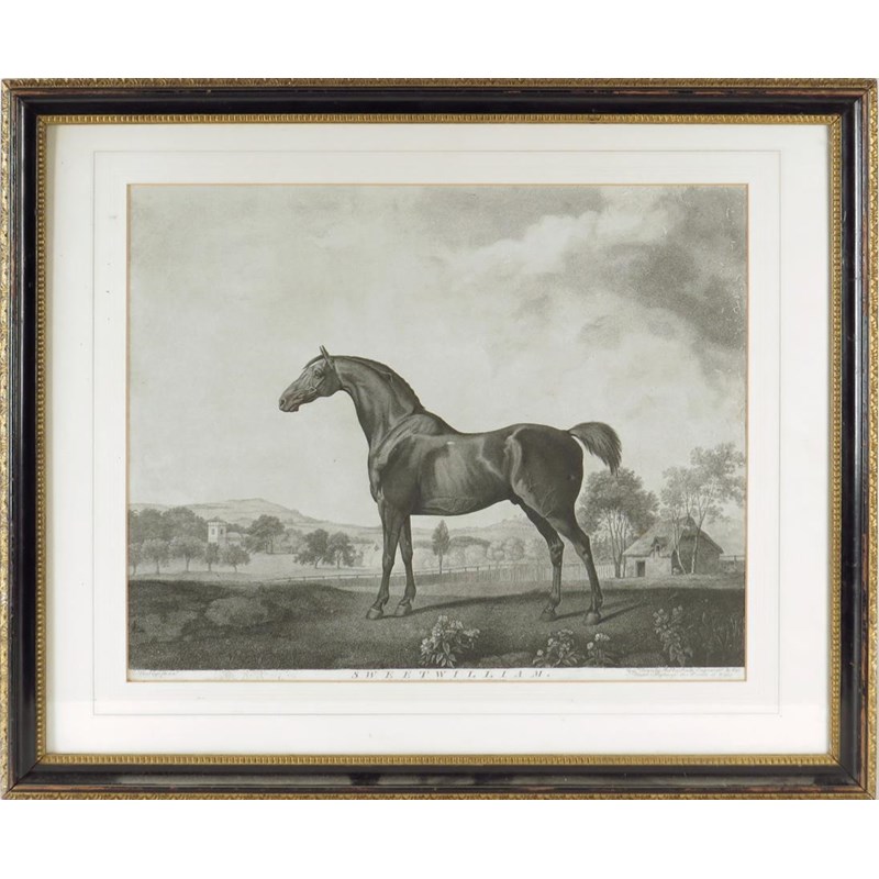 After George Stubbs (1724-1806). 'SWEETWILLIAM', a stipple engraving with etching engraved by George Townley Stubbs, published London 1817, 39.8 x 50cm, in a glazed, gilt and ebonized carved Hogarth type frame.