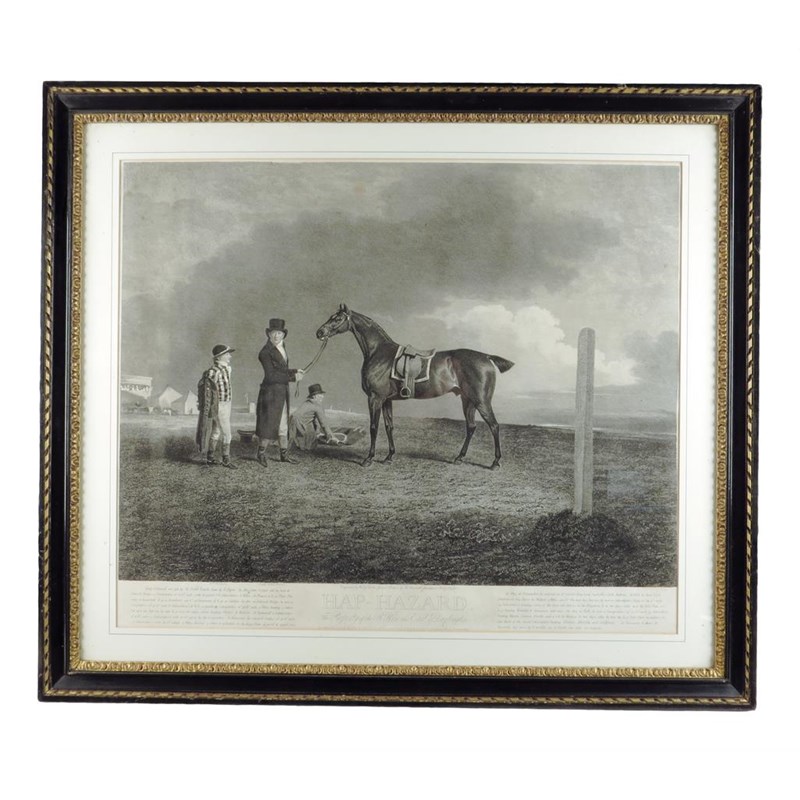 After Ben Marshall (1767-1835). 'HAP-HAZZARD', an engraving by W & G Cooke, published London 1805, 50.5 x 60.3, in a glazed, gilt and ebonized carved Hogarth type frame.