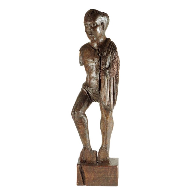 A Flemish Romanesque carved oak figure of a Roman Centurion