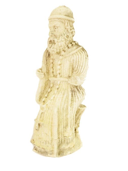 A carved stone figure of a Bishop or Pope in Romanesque style