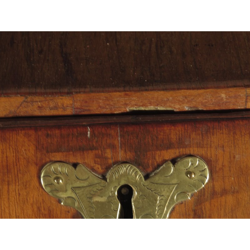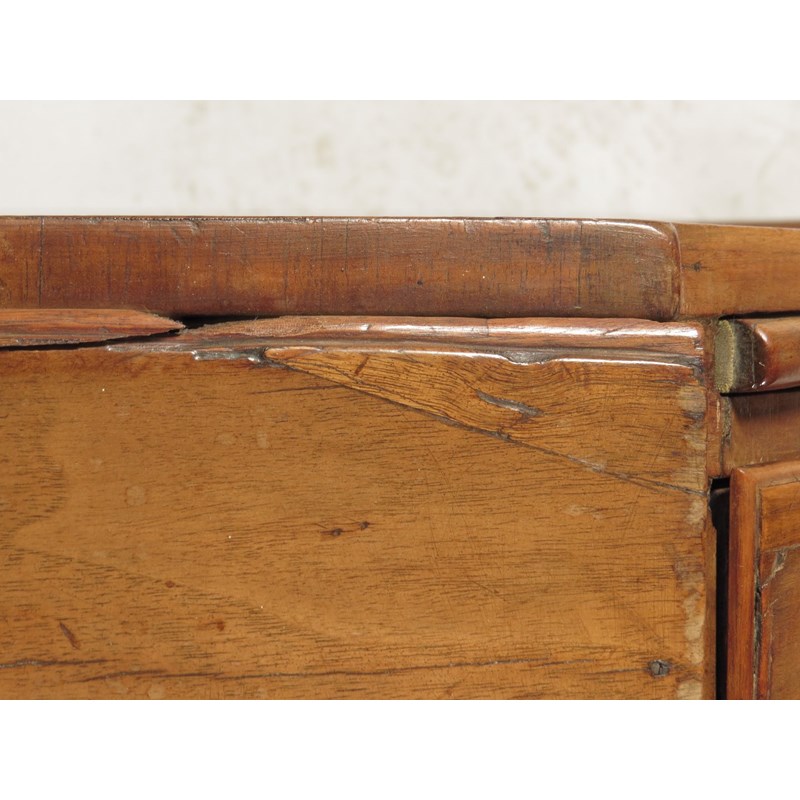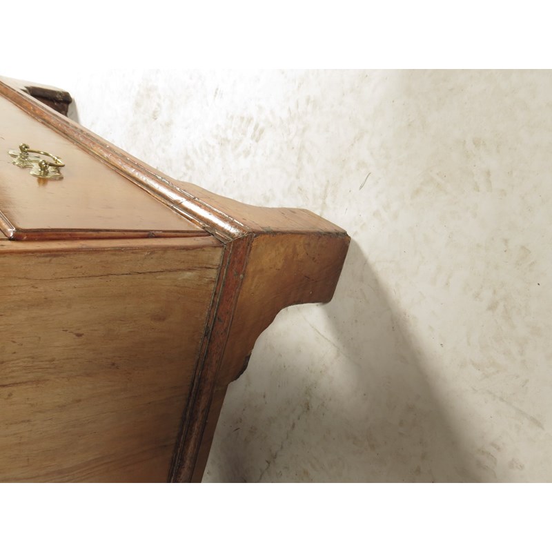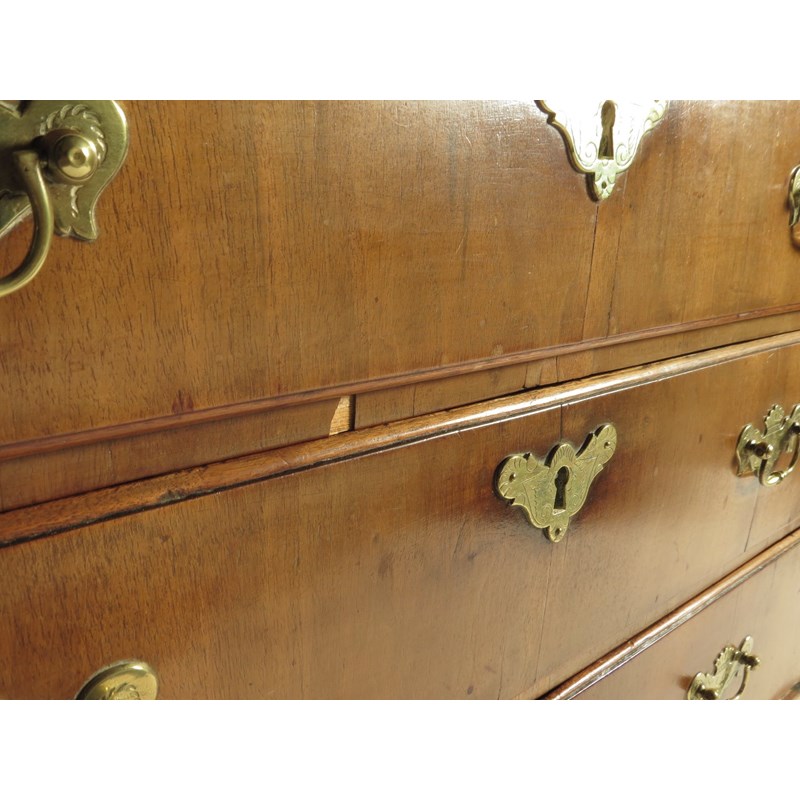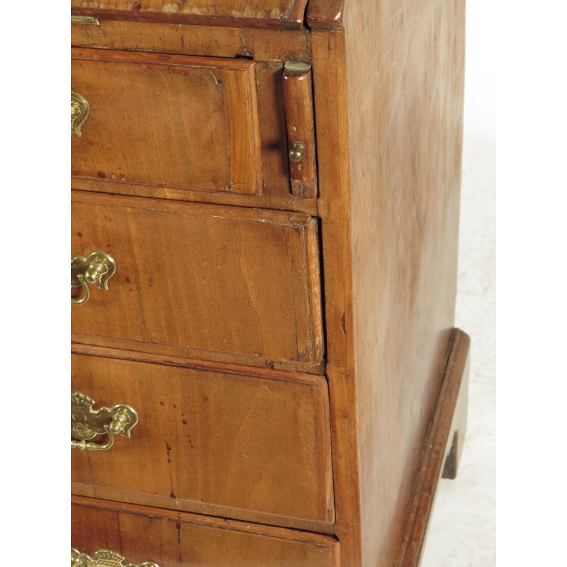 A George II walnut bureau, the interior fitted with pigeon holes and drawers above four long graduated drawers, 101.3cm high, 87.5cm wide, 49.8cm deep.