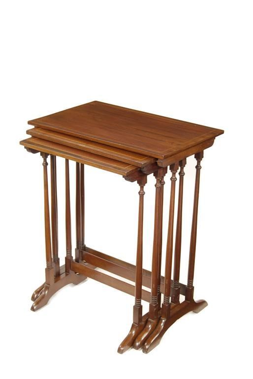 A nest of three mahogany occasional tables, the tops inlaid chequer stringing and on turned supports, late 19th / early 20th century, 28.5in (72.3cm) h, 23in (58.5cm) w, 16in (41cm) d.