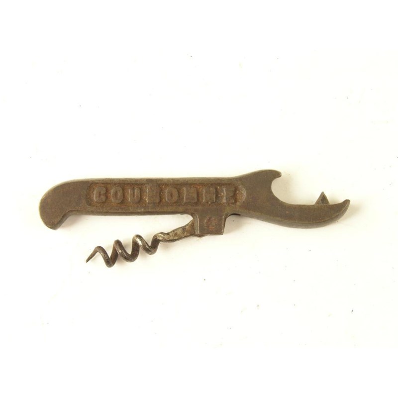 A French iron folding corkscrew, with cap lift and cast DEBOUCHNOIR and COUBONNE.
