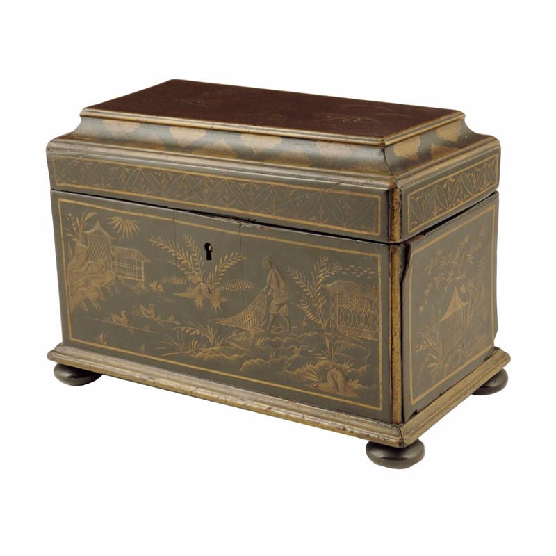 A black japanned tea caddy