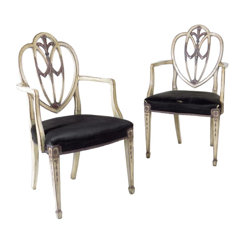 A pair of painted open armchairs in George III style