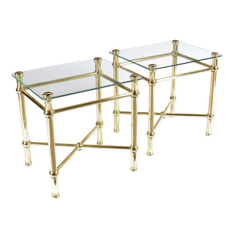 A pair of brass occasional tables, each with a plate glass top, modern, 51.3cm high, 50cm wide, 41.5cm deep. (2)