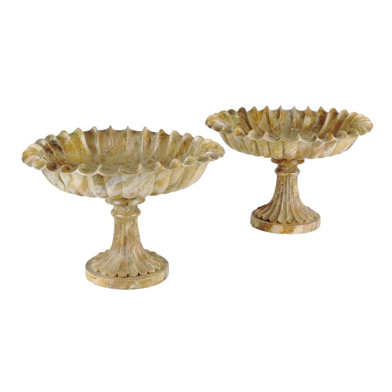 A pair of painted wood faux marble tazzas, each with a scalloped bowl on a fluted spreading foot, 26cm high, 39.2cm diameter. (2)