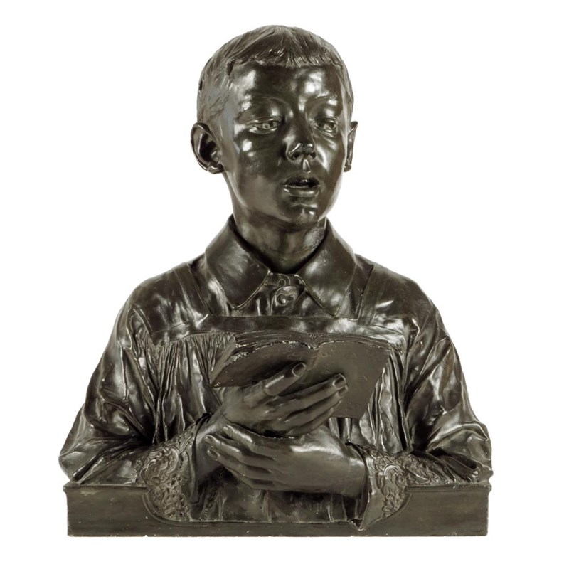 This has been damaged in transport. ‡ Francis H. Aloysius Jahn (1871-1967). A plaster bust of a choirboy, with a bronzed patination, stamped to the back 'F.H.A. JAHN', 55.8cm high, 48.5cm wide.