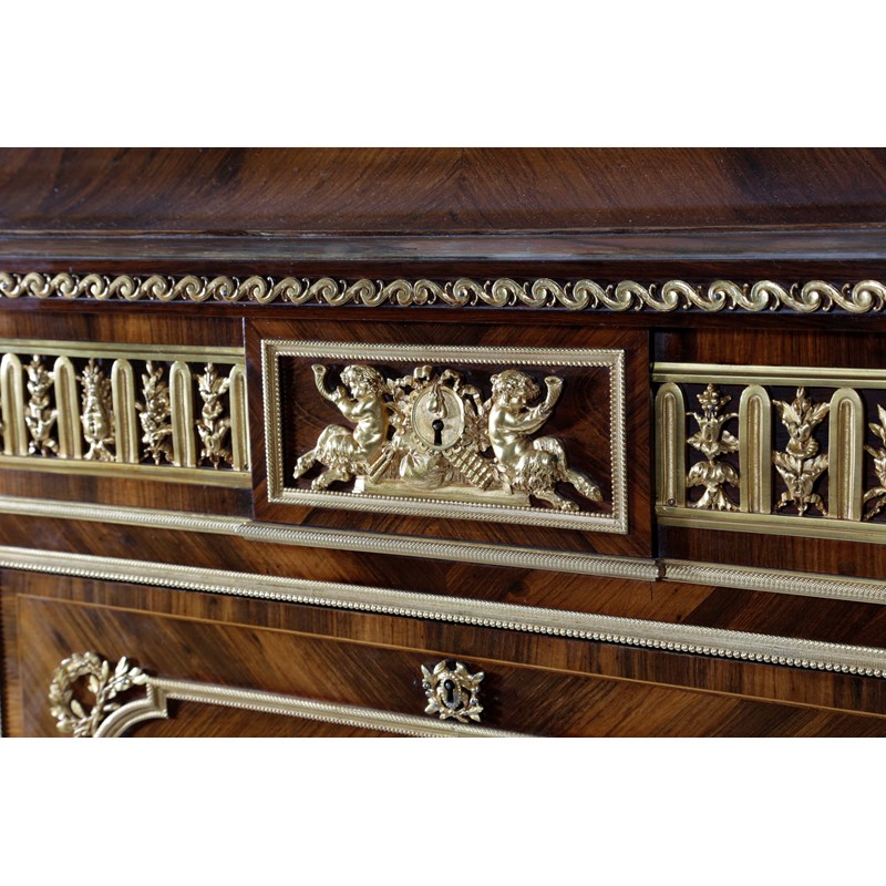 Λ A FRENCH KINGWOOD AND ROSEWOOD SECRETAIRE A ABATTANT IN LOUIS XVI STYLE