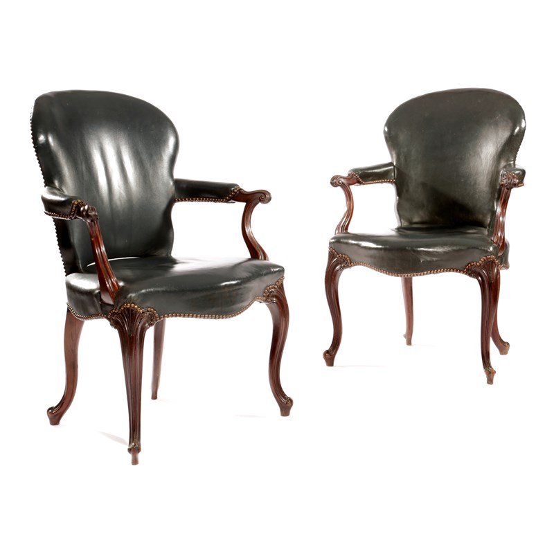 A PAIR OF GEORGE III MAHOGANY OPEN ARMCHAIRS