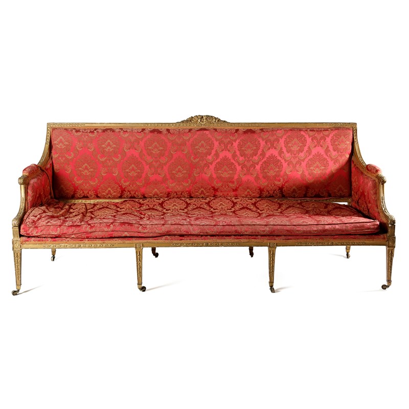A LARGE GILTWOOD SOFA