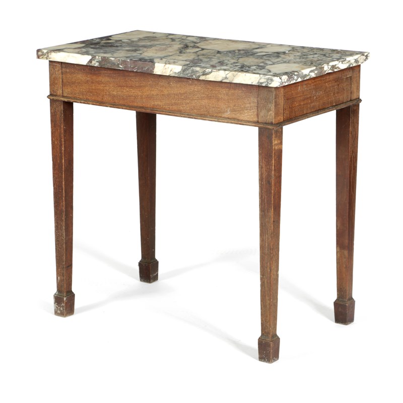 with a breche violet marble top, above a plain frieze, on square tapering legs and block feet