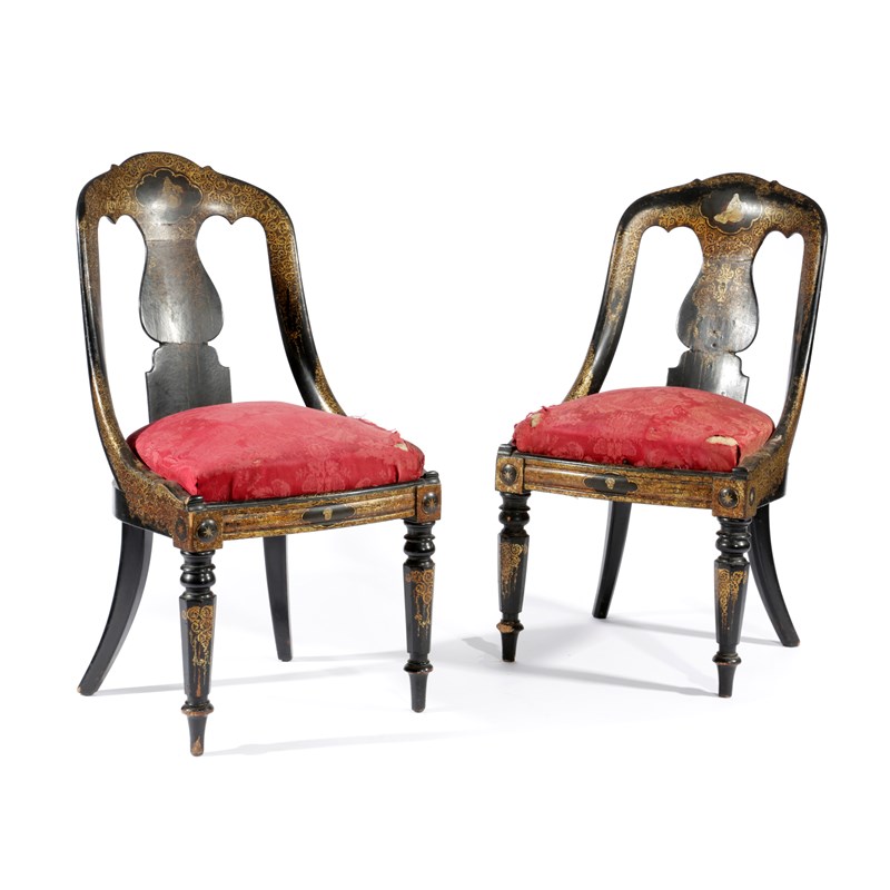 A PAIR OF EARLY VICTORIAN PAPIER-MACHE SIDE CHAIRS