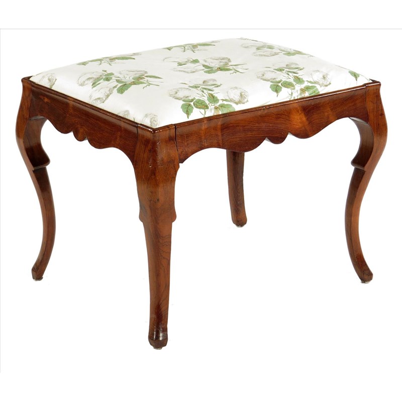 λAn early Victorian rosewood stool, with a drop-in seat on cabriole legs, 18in (45.7cm) high, 22¾in (57.7cm) wide, 18½in (46.7cm) deep.