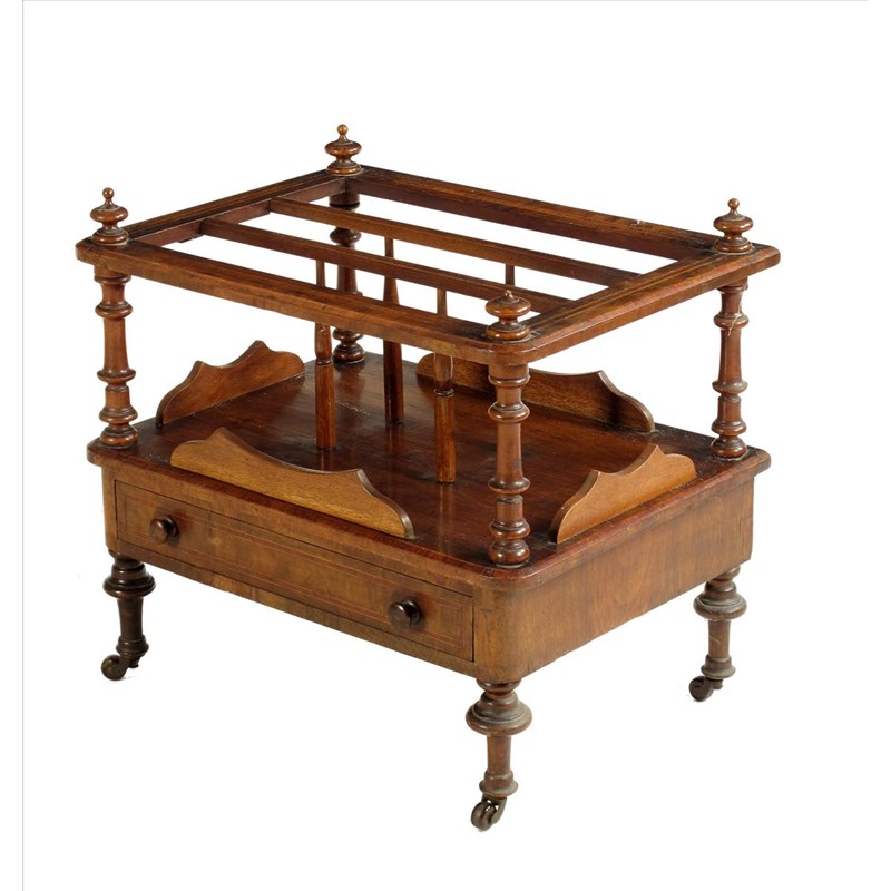 A Victorian walnut Canterbury, with three divisions, 20¼in (51.3cm) high, 22in (56cm) wide, 16in (40.7cm) deep.