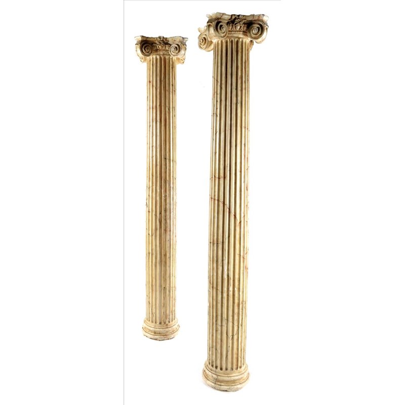 A pair of faux marble plaster Ionic capital columns, 99in (251.5cm) high. (2)