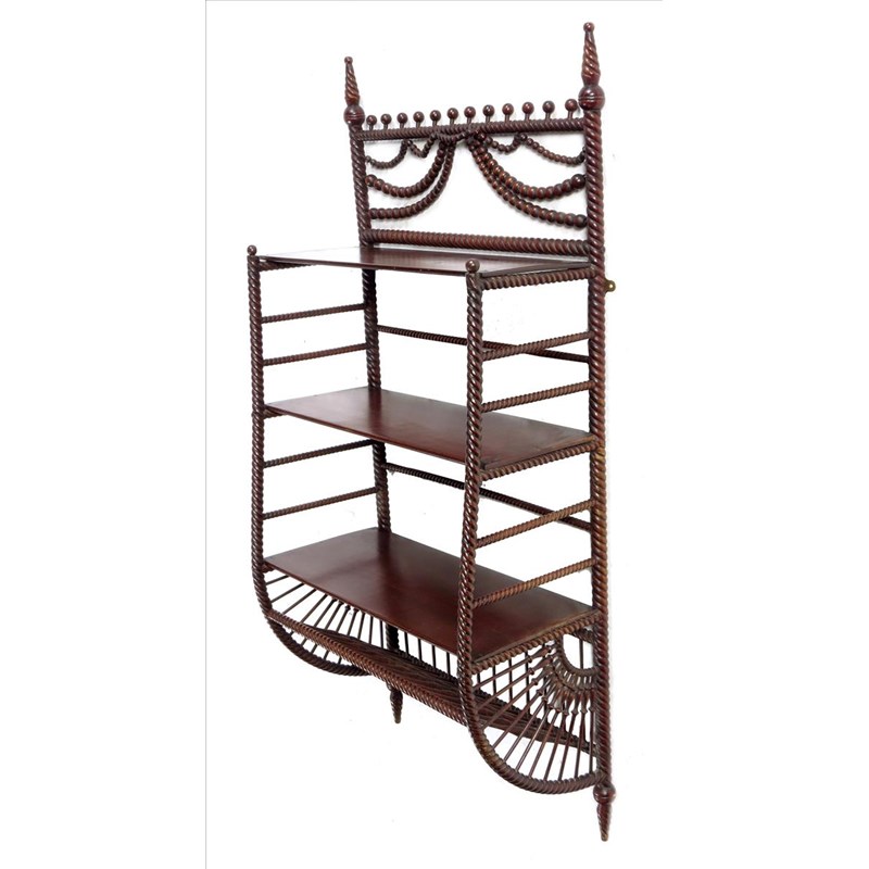 A set of late 19th century mahogany rope twist wall shelves, the base with turned spindles, possibly Anglo-Indian, 50in (126.7cm) high, 22½in (57cm) wide, 10¼in (25.7cm) deep.
