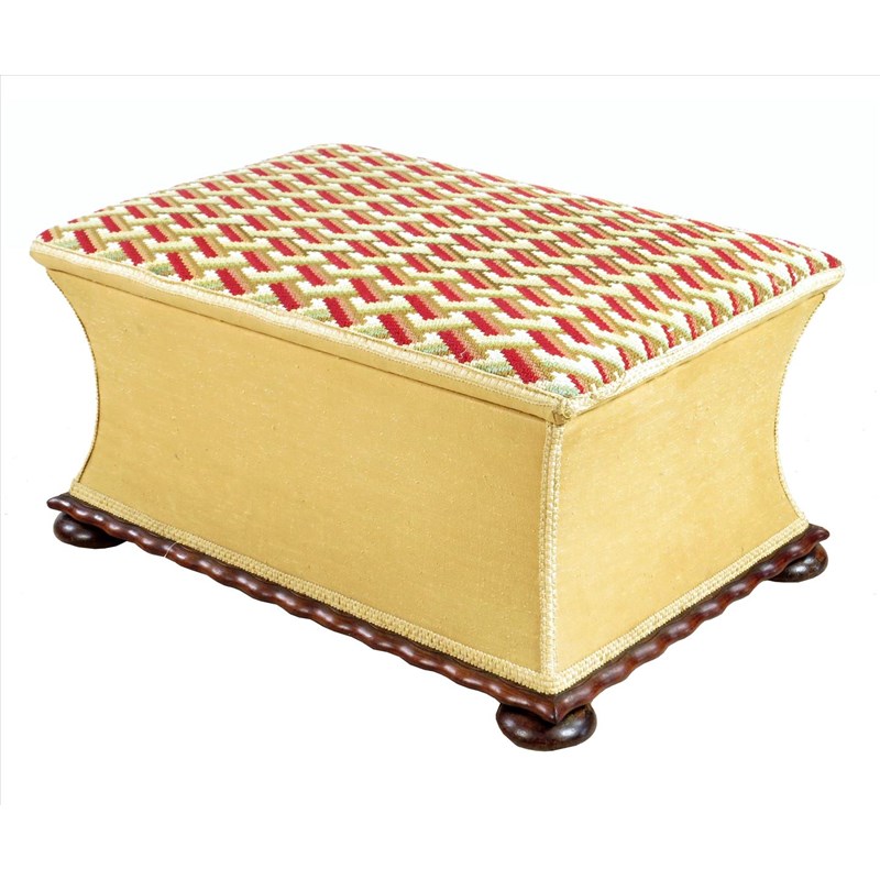 λA Victorian rosewood ottoman stool, on brass castors, 16¾in (42.5cm) high, 33in (84cm) wide, 23½in (59.5cm) deep.