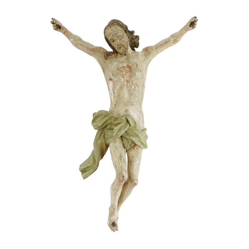 A century German carved wood and polychrome decorated Corpus Christi, late 17th / early 18th century, 39.5cm high, 28.7cm wide.