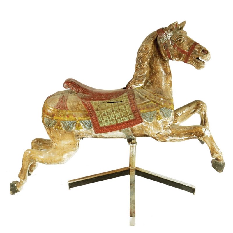 A late 19th century carved wood and polychrome decorated fairground horse