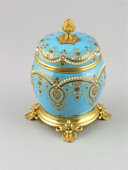 A French enamel and gilt metal mounted scent bottle casket