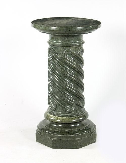 A carved marble pedestal, the circular revolving top on a spiral fluted stem on an octagonal base, 33in (83.6cm) h, 19in (48.2cm) dia.
