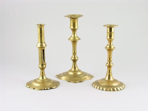 Three 18th century brass candlesticks