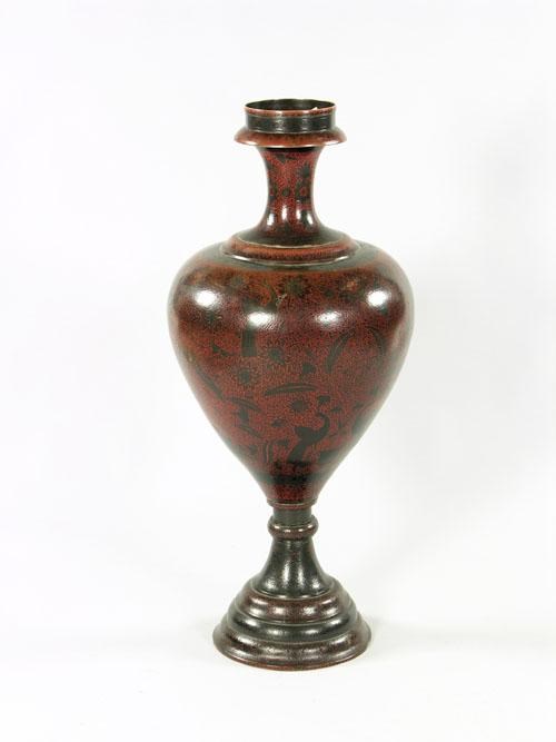 A large eastern brass ovoid vase, with allover foliage and bird decoration, 42.5in (108cm) h.