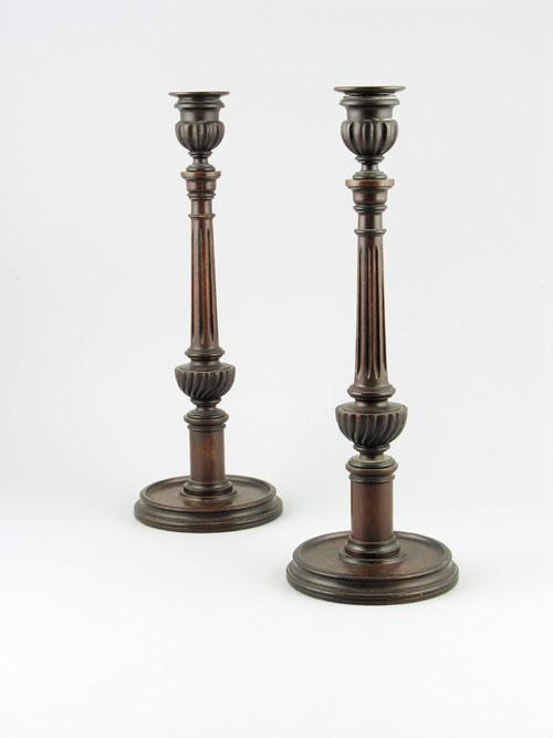A pair of late 19th century turned mahogany candlesticks