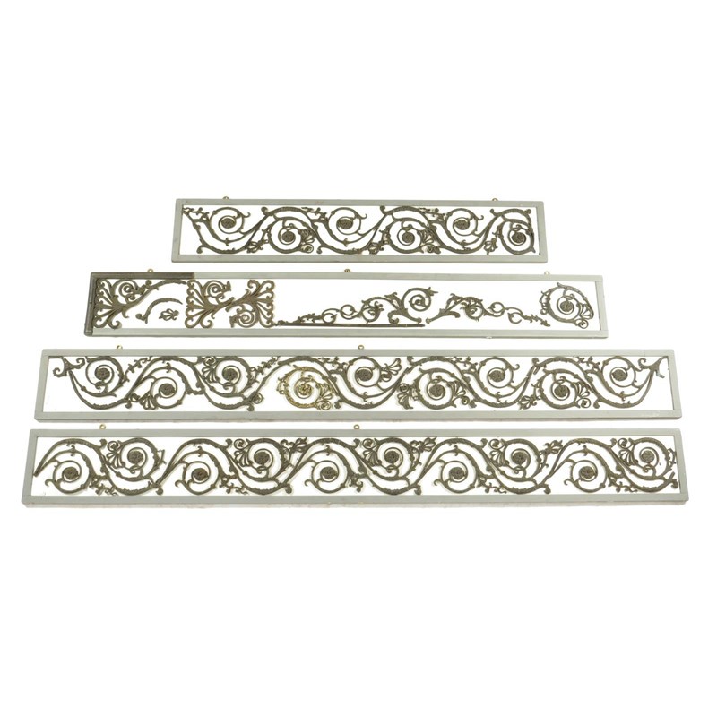 A collection of cast gilt bronze mounts, of scrolling flowers and foliage, later mounted on painted wood panels, late 18th / early 19th century, 257cm wide, 24.2cm deep, max. (4)