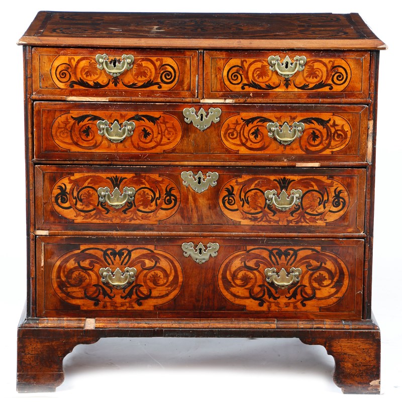 An Anglo-Dutch walnut and fruitwood marquetry chest