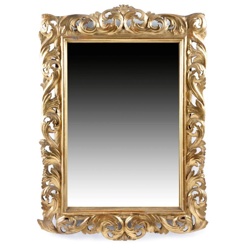 A 19th century Italian Florentine giltwood wall mirror, the later rectangular plate with a pierced scrolling leaf frame, 110 x 78cm.