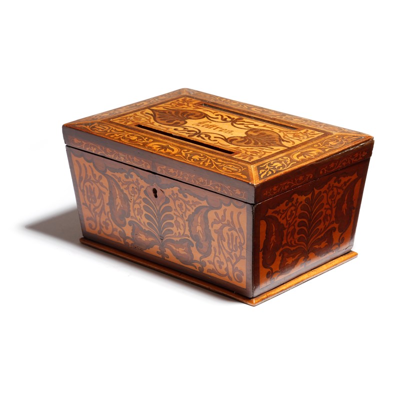 A 19th century French marquetry sarcophagus shape letterbox