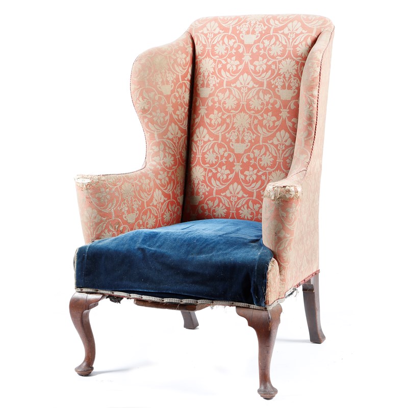 A late Victorian walnut wing armchair in George II style by Howard & Sons