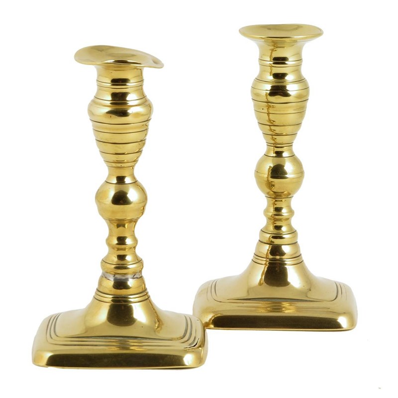 A pair of late George III brass candlesticks