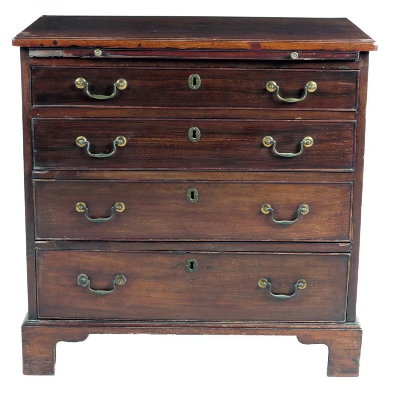 A George III mahogany chest, with a caddy moulded edge top above a brushing slide and four graduated long drawers, fitted with replaced brass handles, on bracket feet, 80.7cm high, 81.1cm wide, 47.1cm deep.