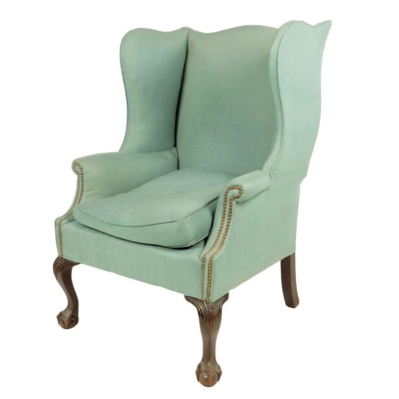 A George II style mahogany wing armchair, on carved cabriole legs and claw and ball feet, late 19th / early 20th century.