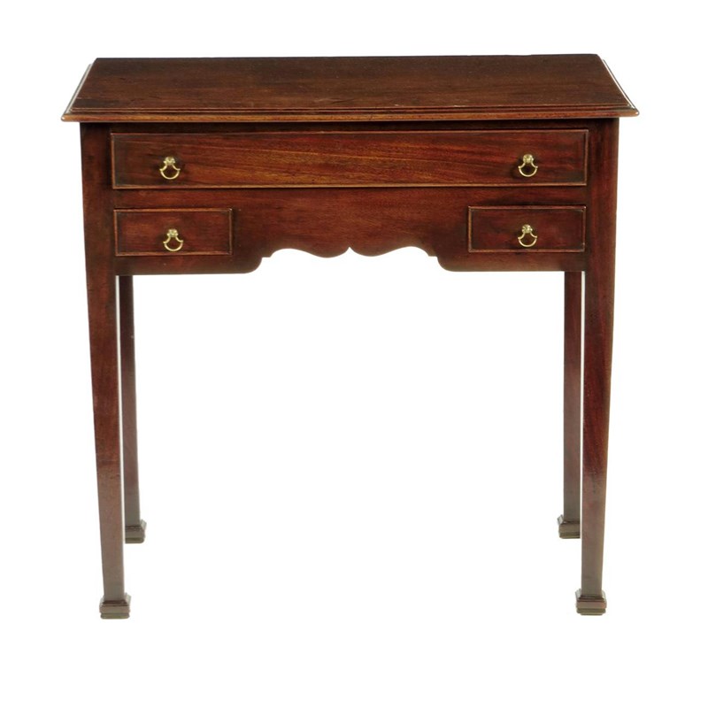 A George III mahogany side table, the moulded edge top above one long and two short drawers on square tapering legs and block feet, 70.5cm high, 73.7cm wide, 41.4cm deep.