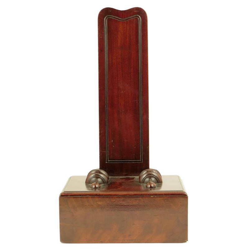 A late Regency mahogany plate stand, 37.5cm high, 20.2cm wide, 13.5cm deep.
