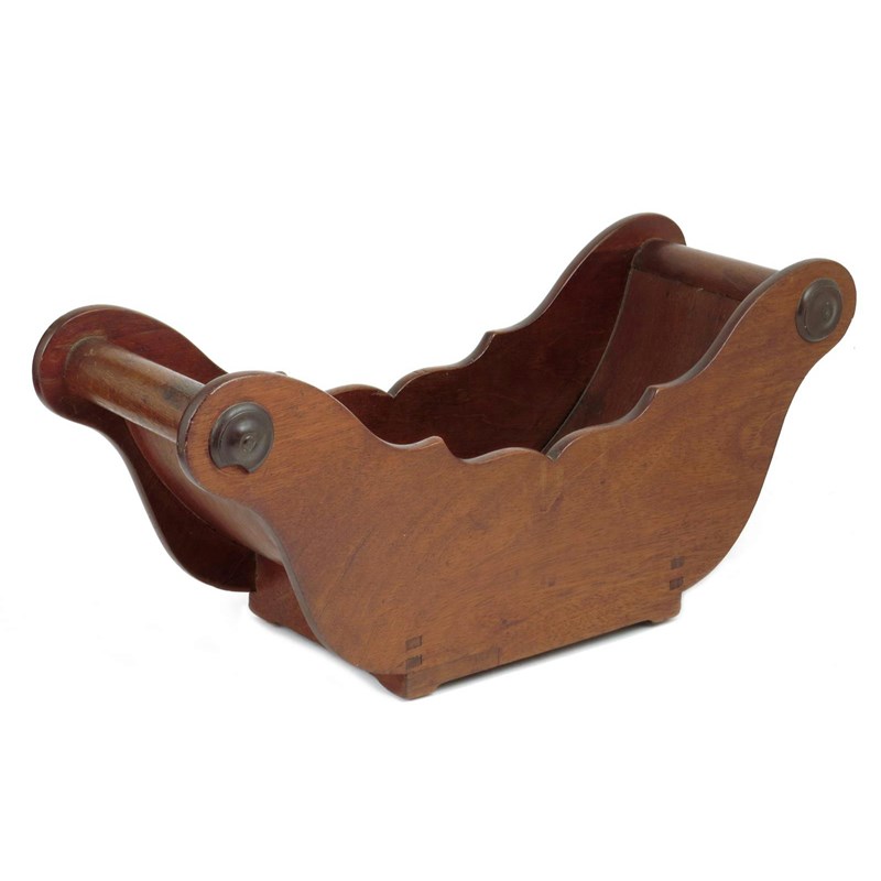 An early 19th century mahogany cheese coaster, with applied rondels and on leather roller castors, 20.1cm high, 47.8cm wide.