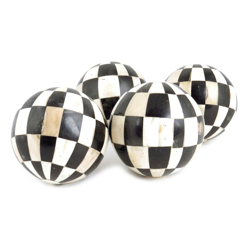 A set of four horn and bone carpet bowls
