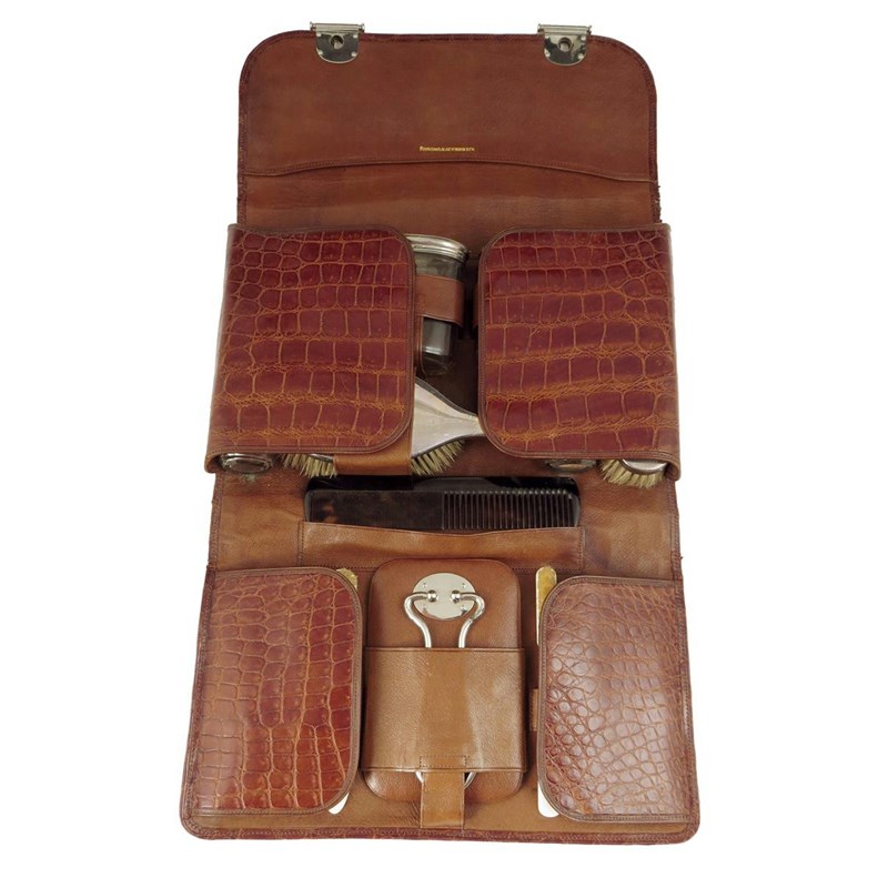 λ An Edwardian crocodile skin gentleman's dressing set by Finnigans