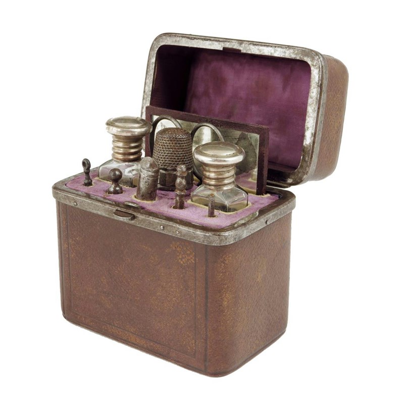 An early 19th century leather and steel mounted nécessaire