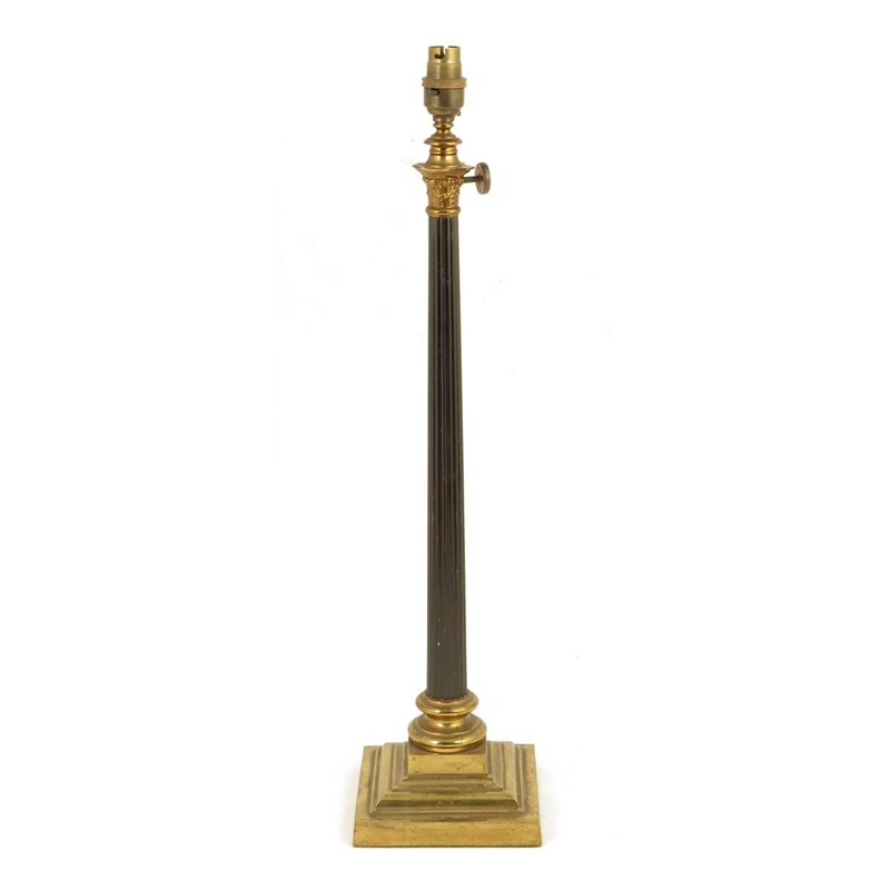 A gilt and patinated brass Corinthian column table lamp