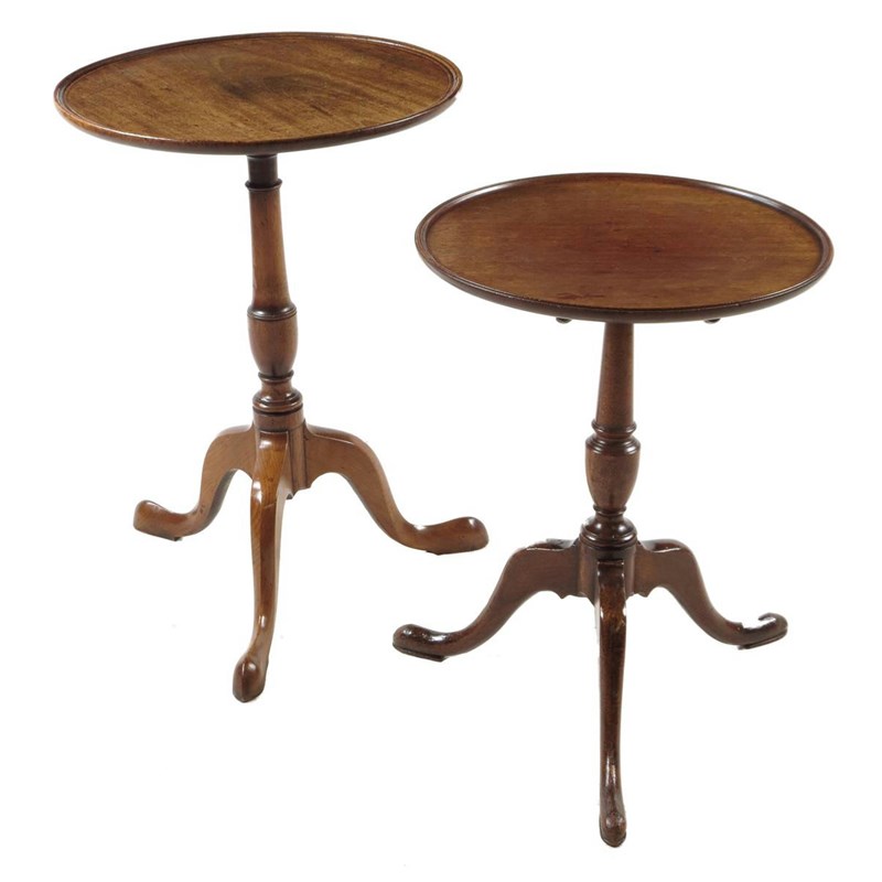 Two mahogany tripod tables, each with a circular dished top, one fixed, the other tilts, 67.4cm high, 48cm diameter, max. (2)