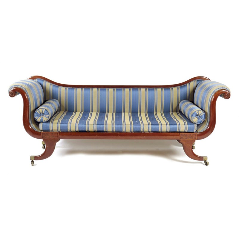 An early 19th century mahogany scroll end sofa