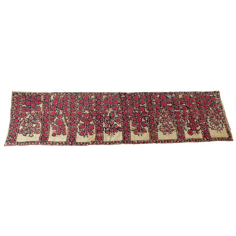 A Tashkent multiple prayer niche Suzani, Uzbekistan, late 19th century, 91 x 356cm.